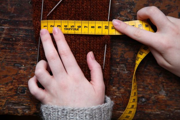 I mönstret står det att du ska ha en masktäthet på 18m x 24v i slätstickning på stickor 4,5 för att få 10x10cm. Om du stickar löst kan du behöva gå ner en halv storlek i stickor och om du stickar hårt kanske du måste gå upp lite i stickstorlek.