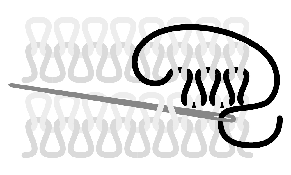 Sy ihop tån med hjälp av maskstygn (grafting)! Fäst lösa trådar.