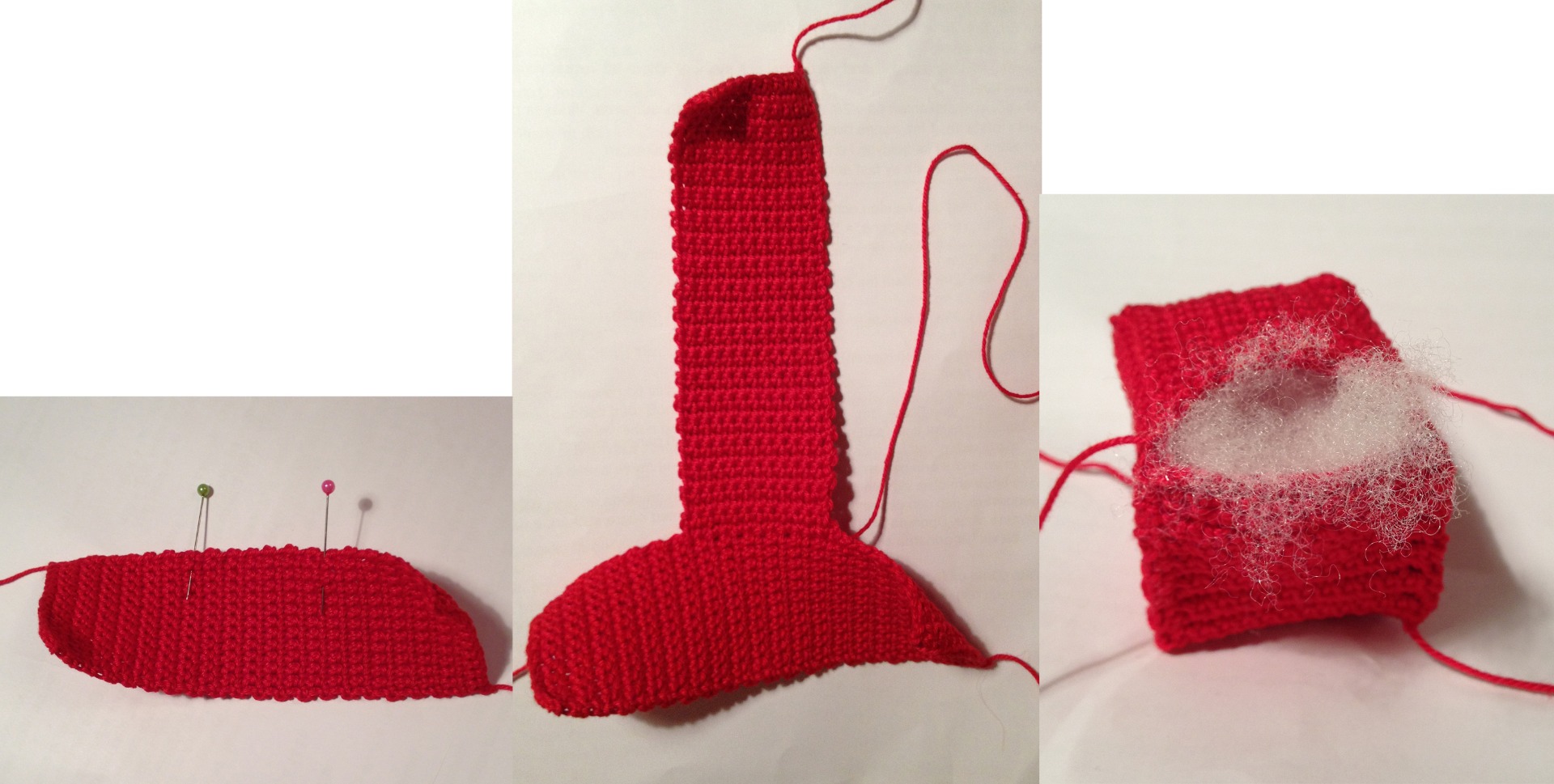 Virka rakt i 7½ (13½) cm. Ta av garnet och dra igenom sista m. Spar en tråd som du kan sy ihop med sen.