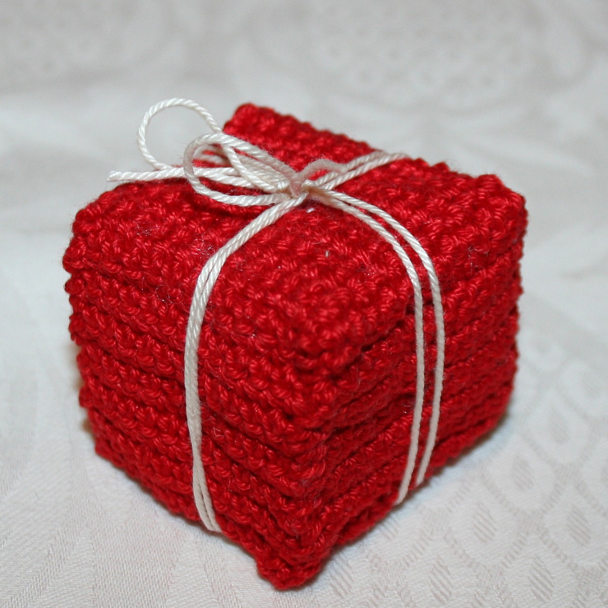Bind en tråd i avvikande färg runtom som paketsnöre.