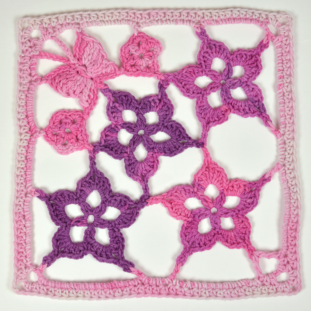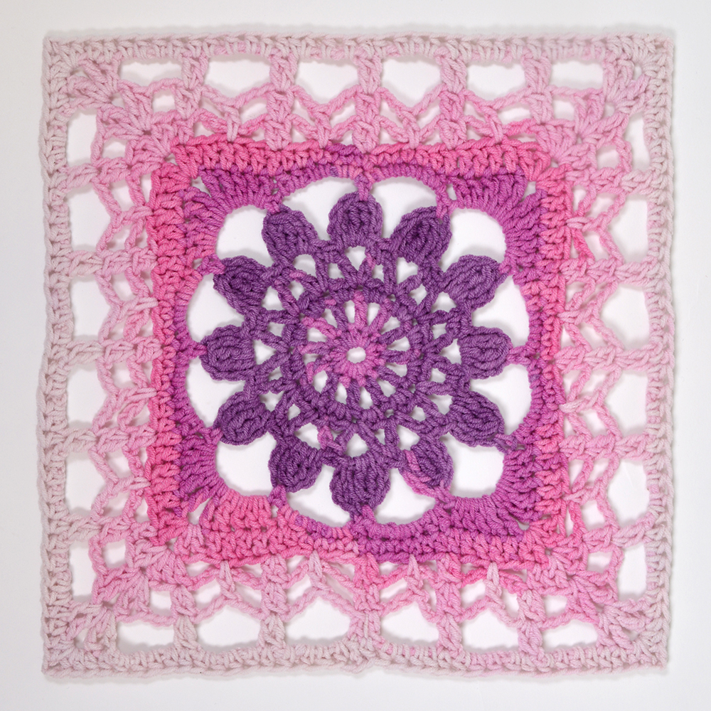 När du virkat de 6 rutorna och 2 av varje, har du 12 rutor. Då behöver vi en sista ruta.
