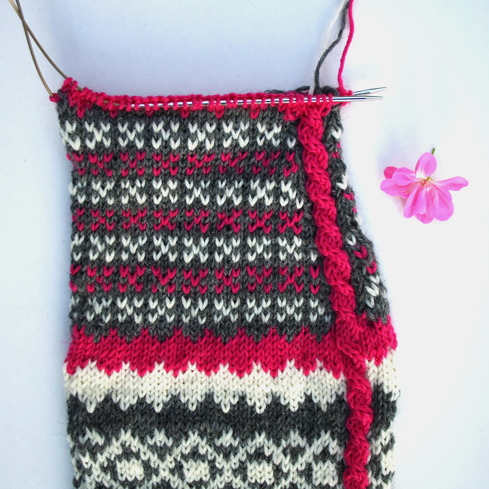 Idag står Maja återigen för designen och ett nytt moment tillkommer, vi ska nämligen börja med intagningar, så att sockan smalnar av mot vristen.