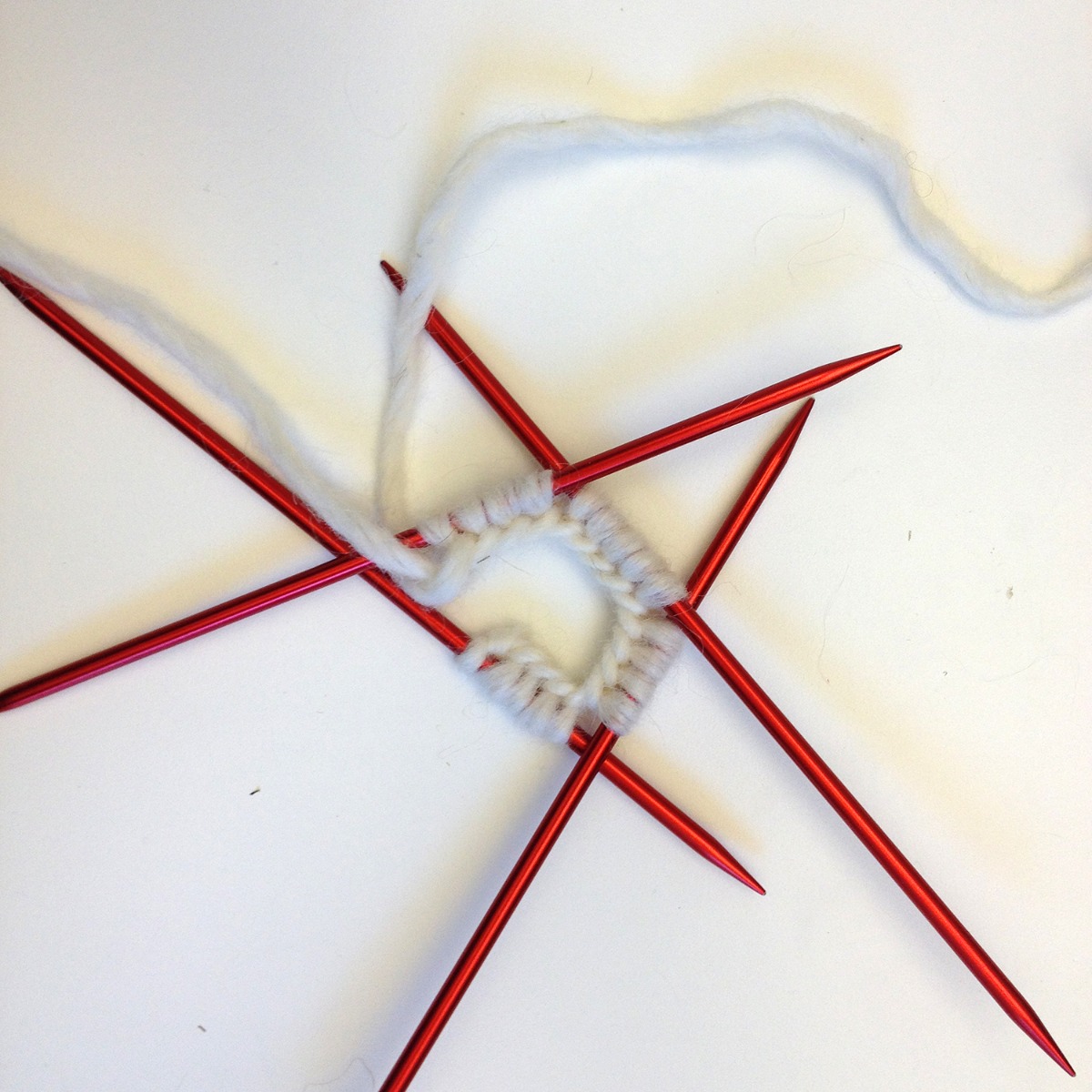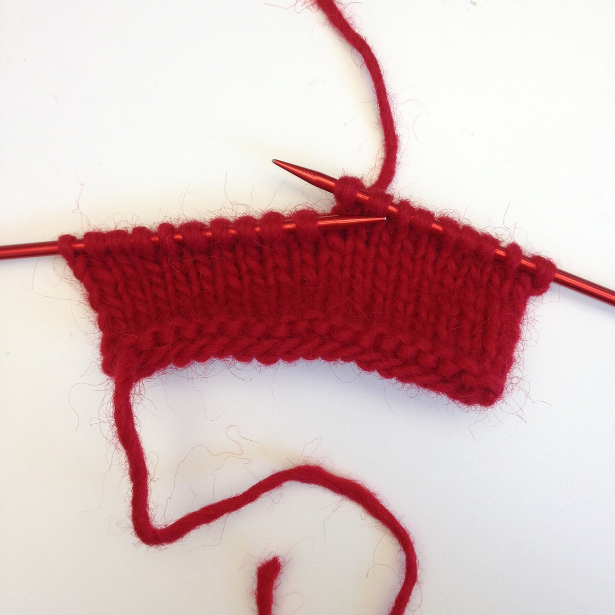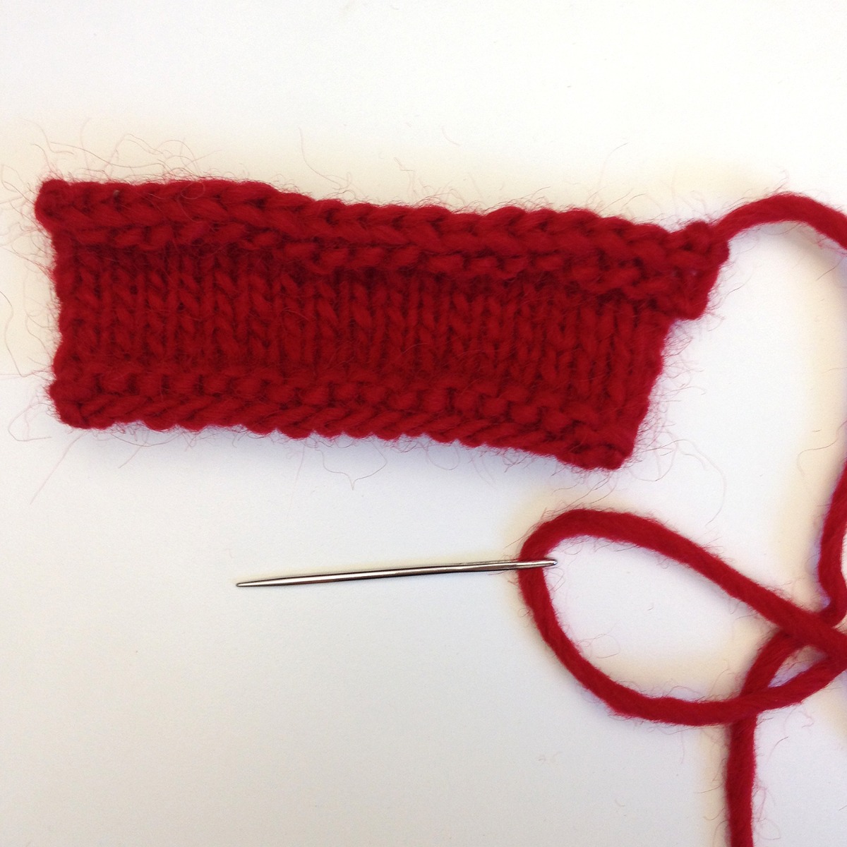 Du kan sticka runt på strumpstickor, så slipper du sy ihop. Eller så kan du sticka fram och tillbaka på vanliga stickor och sen sy ihop till en ring. Med små stygn kant i kant så blir sömmen nästa osynlig och ringen slät ändå.