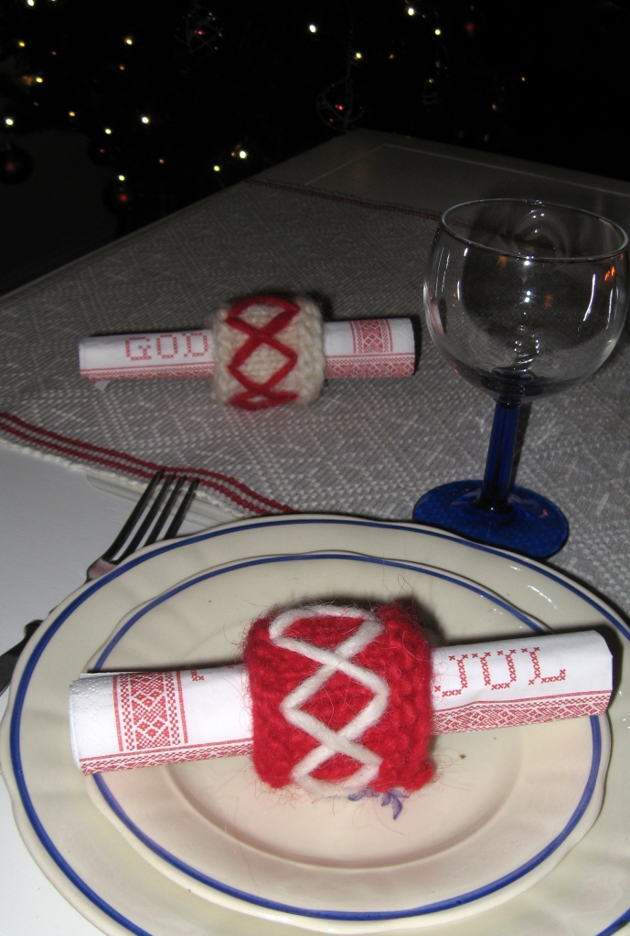 Inspirerade av det tog vi in det rustika, varma till julbordet, och dukade fint med servettringar i Lovikka.