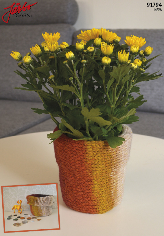 I denna beskrivning (91794) använder jag kortvarv för att forma botten på krukfodralet. Mönstret där heter krokat stickmönster och det kommer vi till senare i krokningsskolan