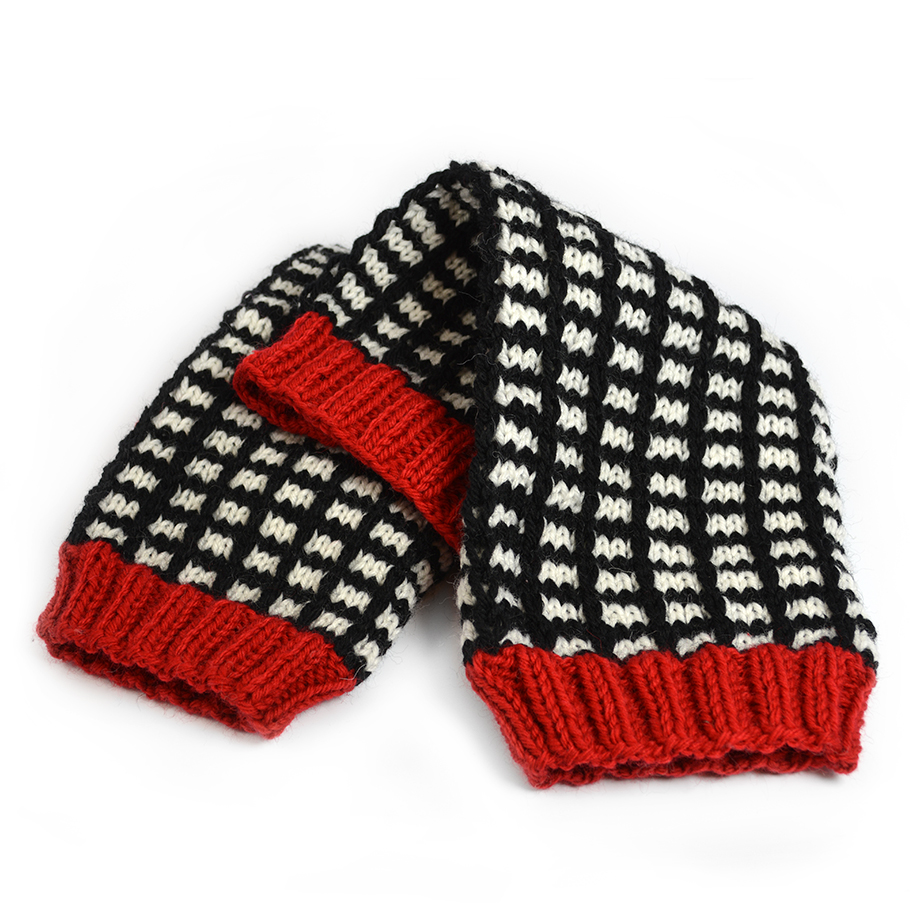 Detta är ett flerfärgsmönster som är lätt att sticka, men ser avancerat ut, inspirerat av Majas rutmönster från Fuskpolon Rut. Man stickar alltid med enbart en färg, alltså bara en tråd i taget. De lodräta svarta linjerna kommer av att man lyfter var 4:e m på de vita varven, utan att sticka den. Otroligt smart och lätt! Ett bra mönster att börja med flerfärgsstickning på, med andra ord.