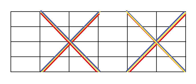 Sy korsstygn över 2 m, med 1 m emellan, enligt skiss.