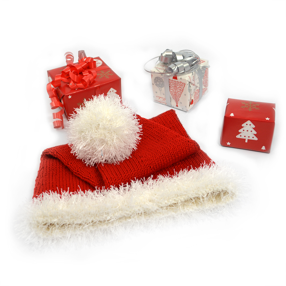 Men, han har visst tappat sin luva bland paketen.. Eftersom han nu behöver en ny passar vi i dagens lucka på att bjuda på en gratis beskrivning till denna fina tomtemössa. Varsågod!