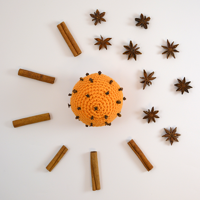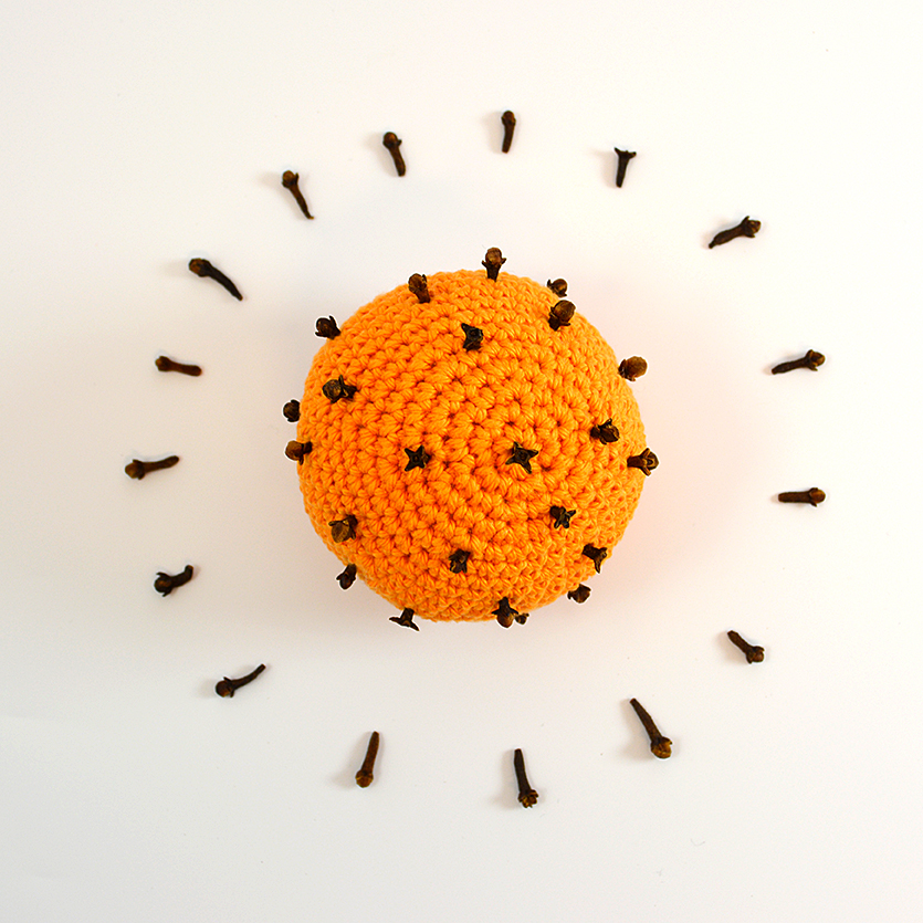 Tillbehör: Fyllnadsvadd, kryddnejlikor, ev. rött band.
