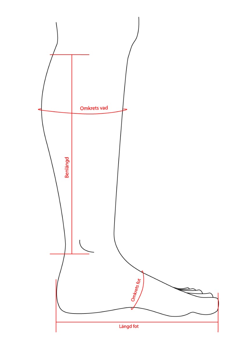 - Mät foten och bestäm storlek. Skriv ner måtten – använd gärna tabellen nedan.