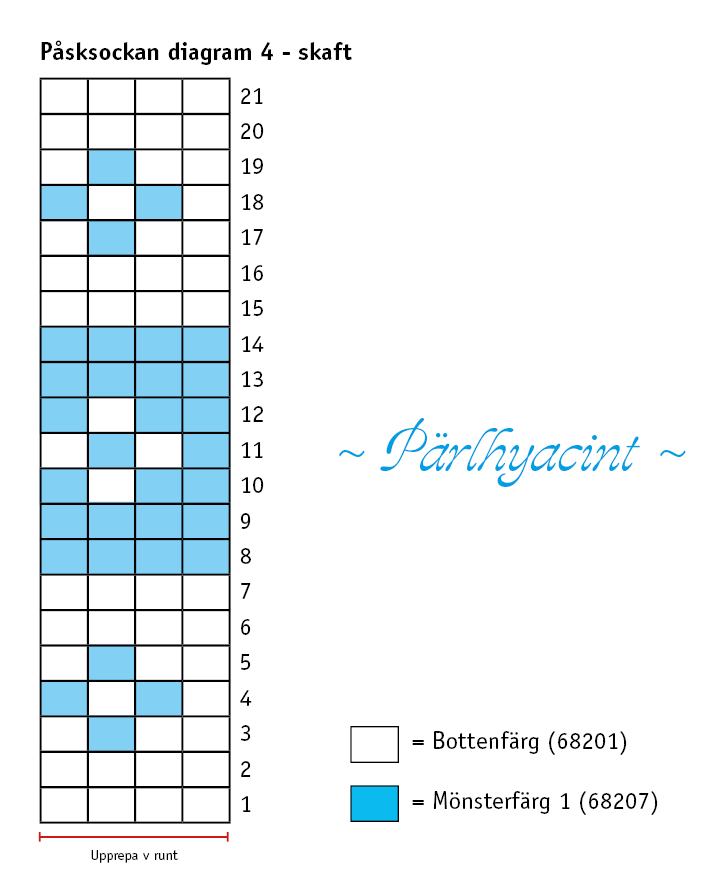 Sticka skaftet enligt diagrammet, varv 1-21.