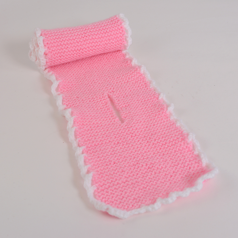 Virkad kant: Virka runt hela halsduken med vitt garn. Börja i ett hörn.