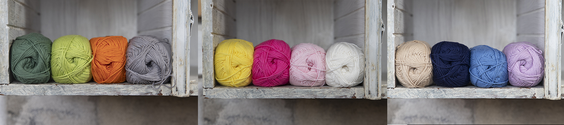 Hvis der ikke er nogen af disse kombinationer, der falder i din smag, så er der masser af andre fine farver at vælge imellem til begge garnalternativer. Håber at du finder nogen farver, som du synes om!
