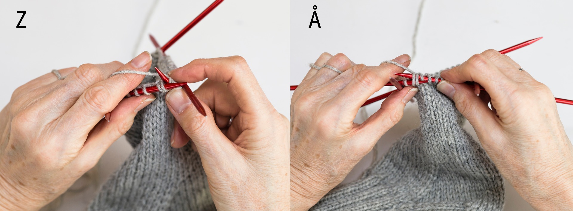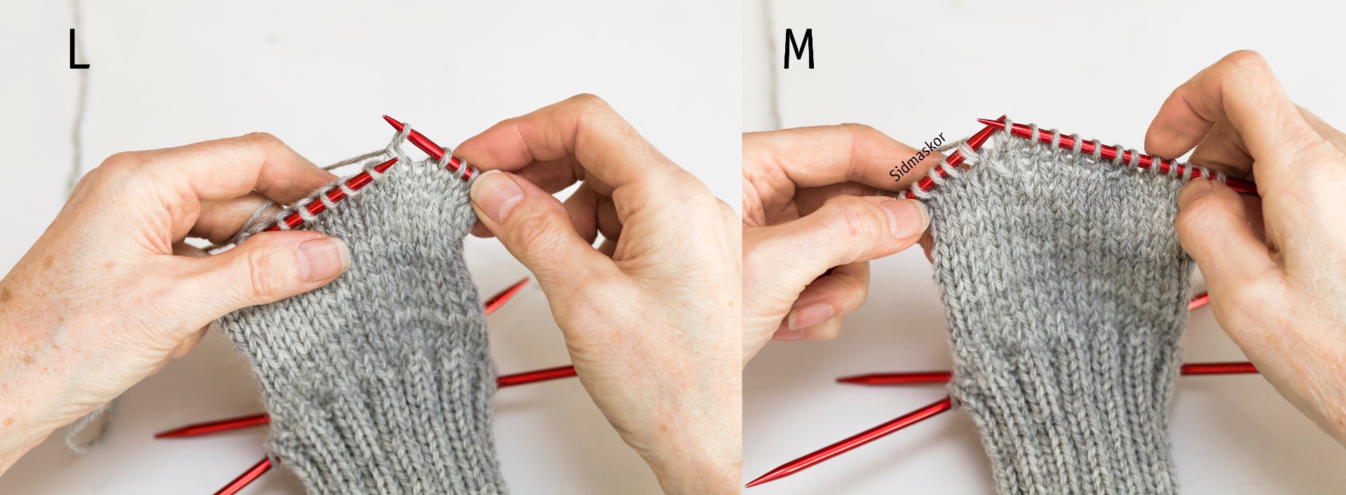Här nedan visar vi med bilder hur du gör alla moment som kan vara svåra i en socka. Stickor och mått som anges är efter storlek 37-39 i Raggi. Övriga storlekar, se länken ovan och byt ut siffrorna inom [ ] för önskad storlek. Detsamma gäller om du stickar i Mellanraggi eller Miniraggi.