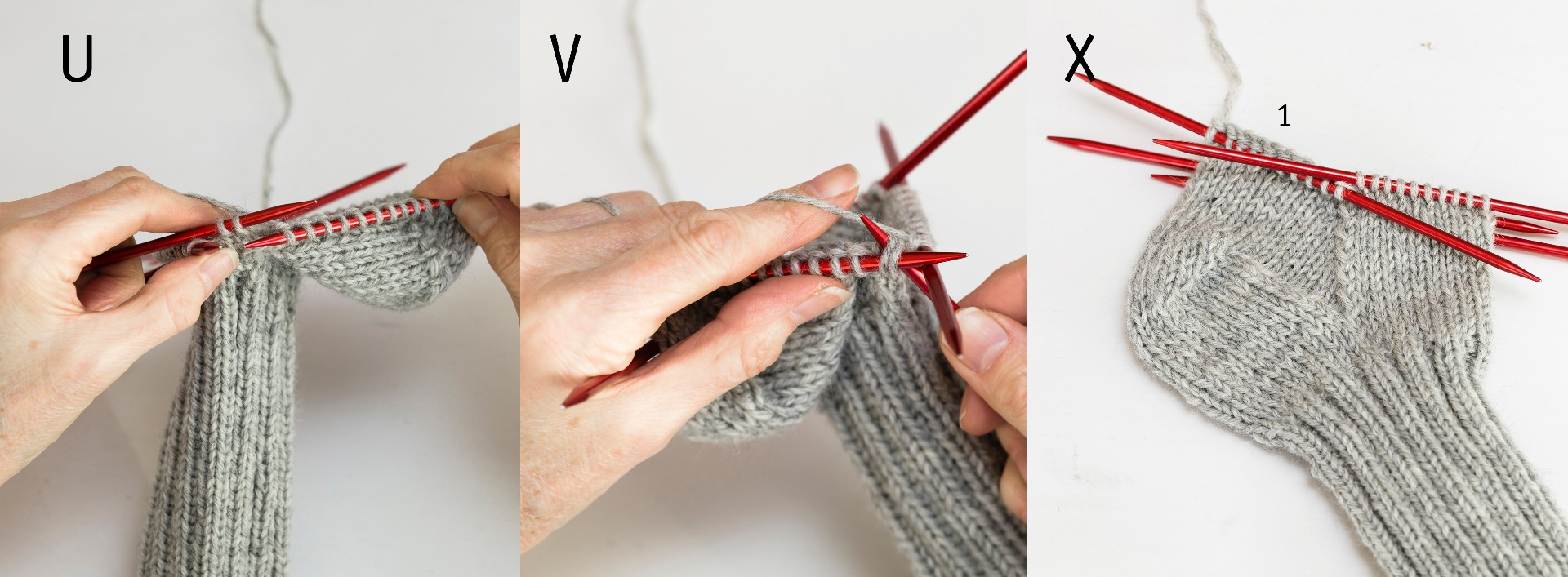 Sticka därefter 1 v rm. Nu är hälen färdig!