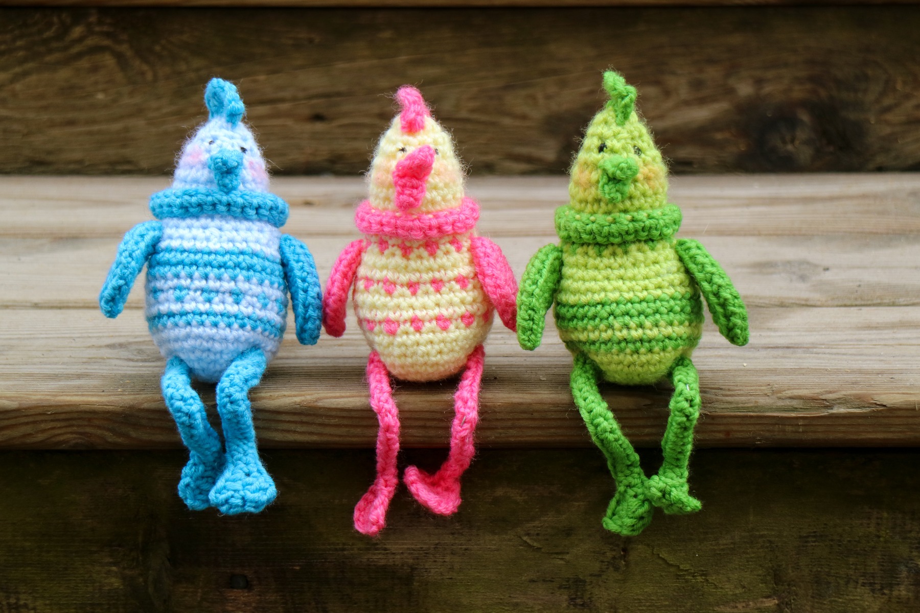Dessa busiga små kycklingar älskar att lysa upp påsken med sina glada färger. Med sådana här i riset istället för dun försäkrar du dig dessutom om att ditt påskpyntande inte har orsakat något lidande, och det är ju bra! Kycklingarna är enkla att virka och du kan variera färger precis som du vill.