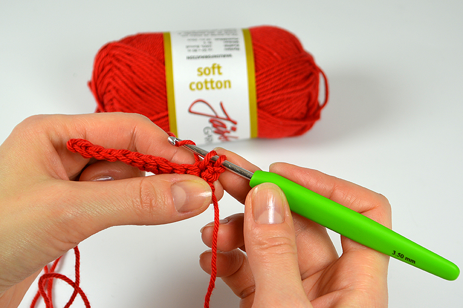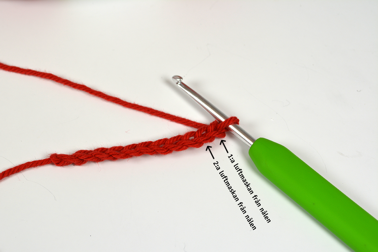 Räkna maskorna. Varje ögla = 1 luftmaska. Öglan på virknålen räknas inte.
