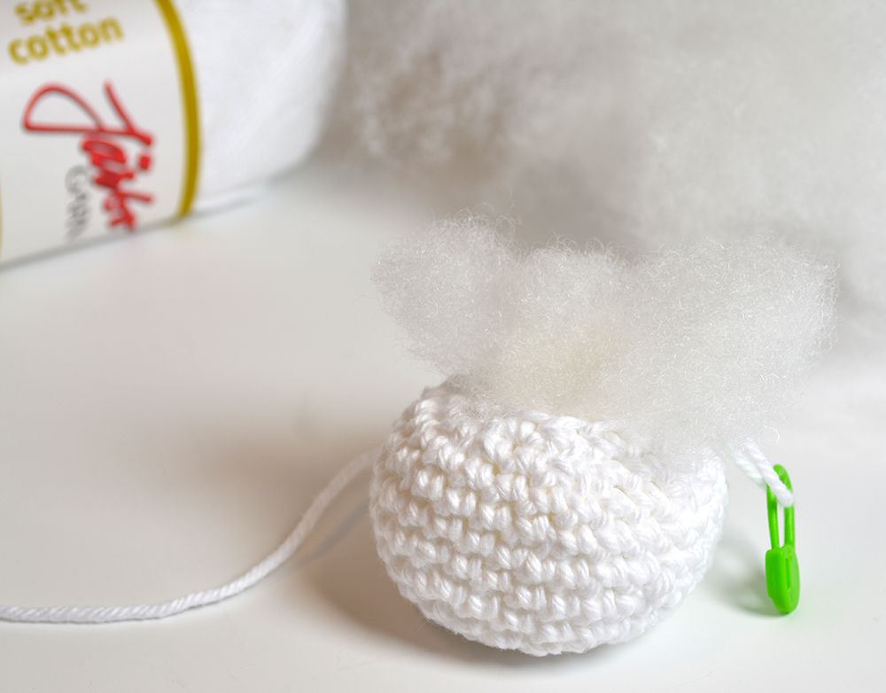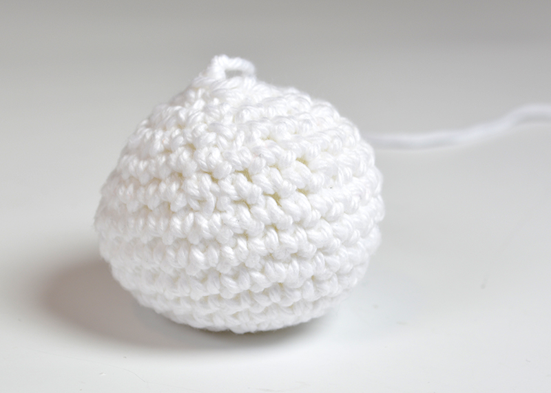 Snöbollarna virkas i spiral, utan avslutning på varven.