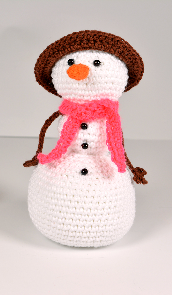 Om du nu vill fortsätta öva på bollar, kan du virka ytterligare två snöbollar av olika storlekar samt några andra delar och sätta ihop till en gullig snögubbe! Beskrivning nedan.