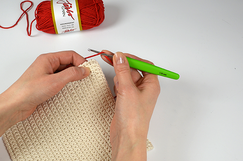 Fäst öglan med 1 fast maska i första varvets första maska.